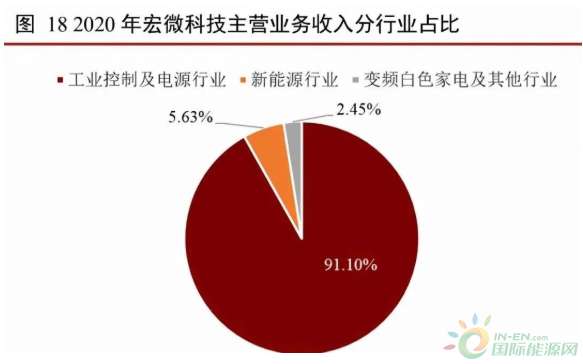 宏微科技是國內(nèi)首批 IGBT 公司。公司成立于 2006 年 8 月,主要產(chǎn)品包括 IGBT、 FRED 芯片、單管和模塊。公司 IGBT 單管芯片全部來自自研,模塊產(chǎn)品芯片自研外購 并舉。公司產(chǎn)品主要用于工業(yè)控制、新能源和變頻白色家電領(lǐng)域,2020 年收入占比分別 為 91.10%、5.63%以及 2.45%。