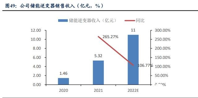 儲能逆變器出貨迅猛增長,預(yù)期翻倍增速。公司 2021 年儲能逆變器出貨 7.03 萬臺, 實現(xiàn)銷售收入 5.32 億,較上年同增 265.27%;2022 年 Q1 儲能逆變器出貨 2.7 萬臺,銷 售收入 1.7 億,同增 193.92%;預(yù)計 2022 年翻倍增長,全年出貨量 14 萬臺以上,銷售 收入 11 億+,同增 100%+。儲能業(yè)務(wù)發(fā)展勢頭迅猛。