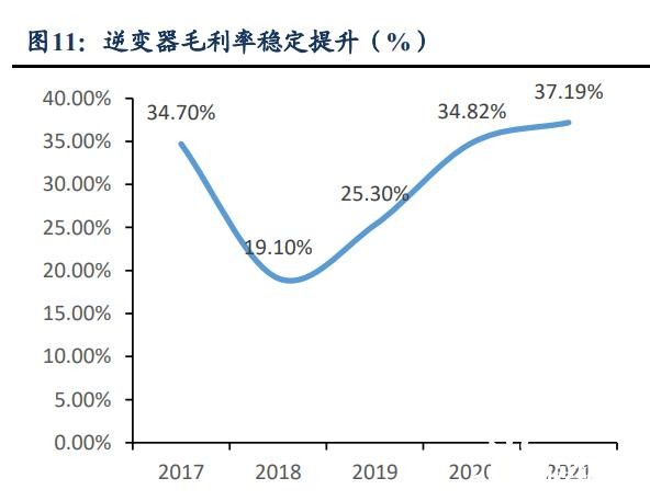 受益分布式市場激增,分布式逆變器盈利向好。分布式市場單價更高、盈利更好。 從單價看,由于成本差異大,戶用逆變器單價遠(yuǎn)高于商業(yè)和工業(yè)。同時,集中式逆變器 更多應(yīng)用于集中電站,2B 模式低單價,分布式市場更多為個人消費者,產(chǎn)品具備一定的 差異化,新進(jìn)入者很難在短期內(nèi)打破客戶與品牌建立的合作,類 C 端消費屬性強(qiáng),盈利 更好。因此隨著分布式裝機(jī)提升,增加了全行業(yè)逆變器的使用數(shù)量以及價值量。