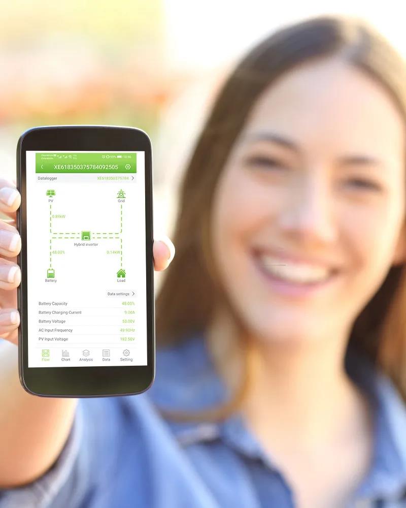 逆變器采用LCD遠(yuǎn)程控制,RS485/RS232通訊接口,便于遠(yuǎn)程通信和控制。此外,逆變器還搭配了智能監(jiān)控系統(tǒng),用戶可以通過智能終端APP隨時隨地查看系統(tǒng)運行狀態(tài)。
